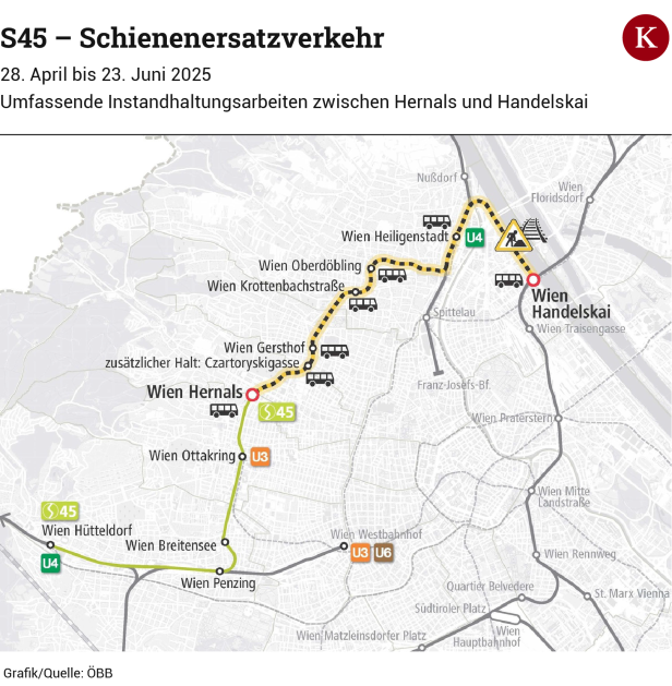 Chronik/Wien NEWSÖffi-Baustelle in Wien: S45 acht Wochen lang unterbrochen by AUSZTRAJOB NEWSApril 23, 20250 Share0 Zwischen 28. April und 23. Juni finden auf der Schnellbahnlinie umfassende Instandhaltungsarbeiten statt.